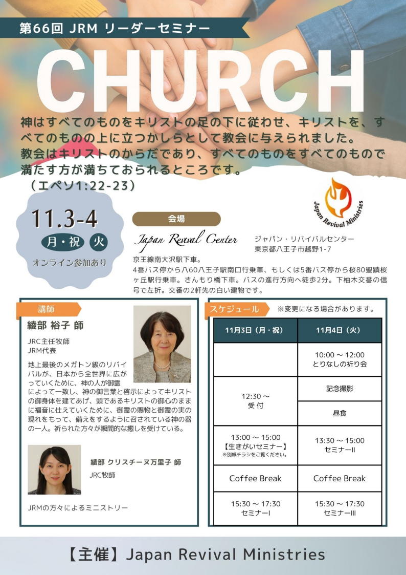 11月4日 とりなしの祈り会10:00〜12:00 セミナーA13:30〜15:00 セミナーB15:30〜17:30
